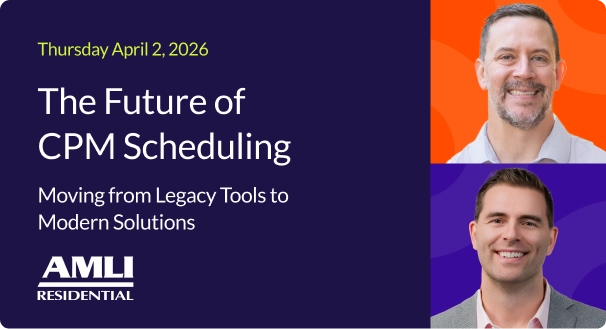 In our upcoming webinar, Mike Trenski at AMLI Residential, will share how his team modernized scheduling operations and replaced Microsoft Project. Learn how their team: